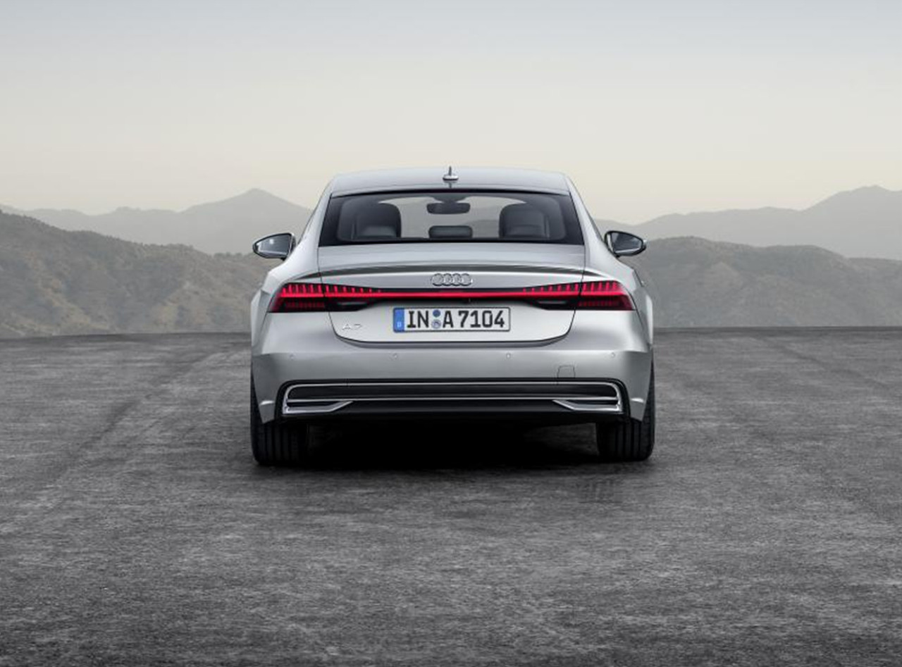 뒷면에서도 새로운 S라인 익스테리어 패키지가 적용되었지만, 눈에 띄는 변화는 적습니다. 그러나 섬세한 디테일에서 고급스러움이 돋보입니다. 뒷부분의 디자인은 클래식한 아우디 A7의 정체성을 유지하면서도 더욱 현대적이고 세련된 느낌을 전합니다.