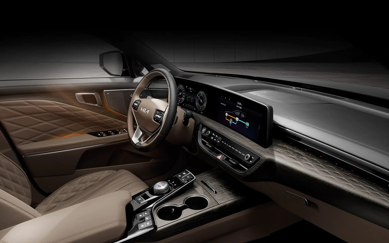 2024 K8 하이브리드는 스포티하면서도 미래지향적인 디자인으로 눈길을 사로잡습니다. 다이아몬드 패턴으로 디자인된 프레임리스 라디에이터 그릴과 LED 리어 콤비네이션 램프는 차량의 현대적인 느낌을 강조합니다. 크롬 사이드 가니시와 17인치 하이브리드 전용 휠은 역동적인 이미지를 부각시킵니다.