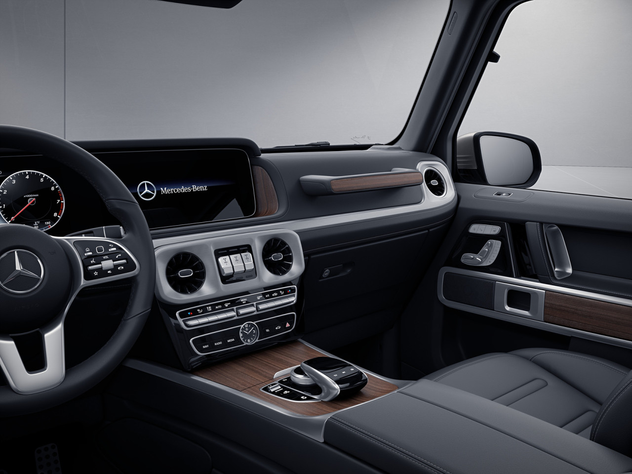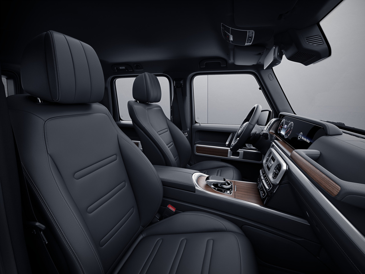G클래스의 내부는 12.3인치 외이드 스크린 콕핏으로 다양한 디스플레이 스타일을 제공합니다. 안전을 최우선으로 하는 다양한 세이프티 시스템이 장착되어 있습니다. 360도 카메라와 초음파 센서는 주행 중에 주차를 안전하게 도와줍니다.