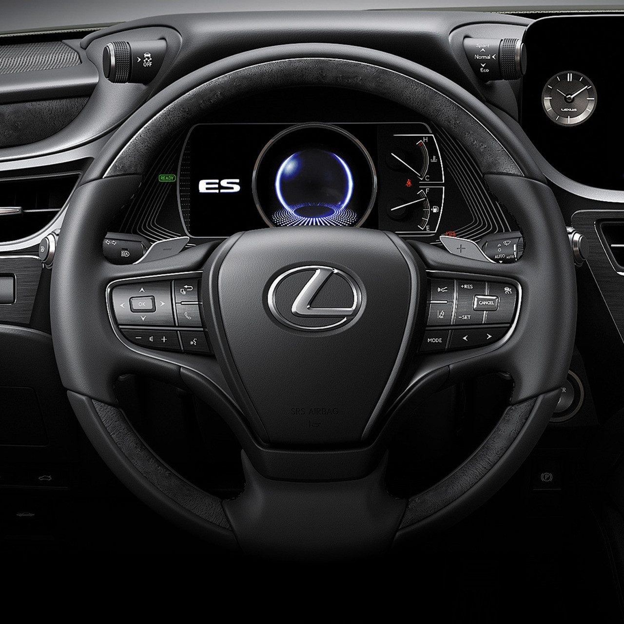 ES 300h의 실내는 선루프로 높은 평가를 받으며, 오버헤드 콘솔 터치를 통해 간편하게 조절할 수 있는 선루프는 운전 중에도 쾌적한 환경을 제공합니다. 운전석은 '시트 인 컨트롤' 콘셉트를 반영하여 사용자 중심으로 설계되었으며, 12.3인치 대형 디스플레이를 통해 운전자에게 안전하고 편리한 운전 환경을 제공합니다.