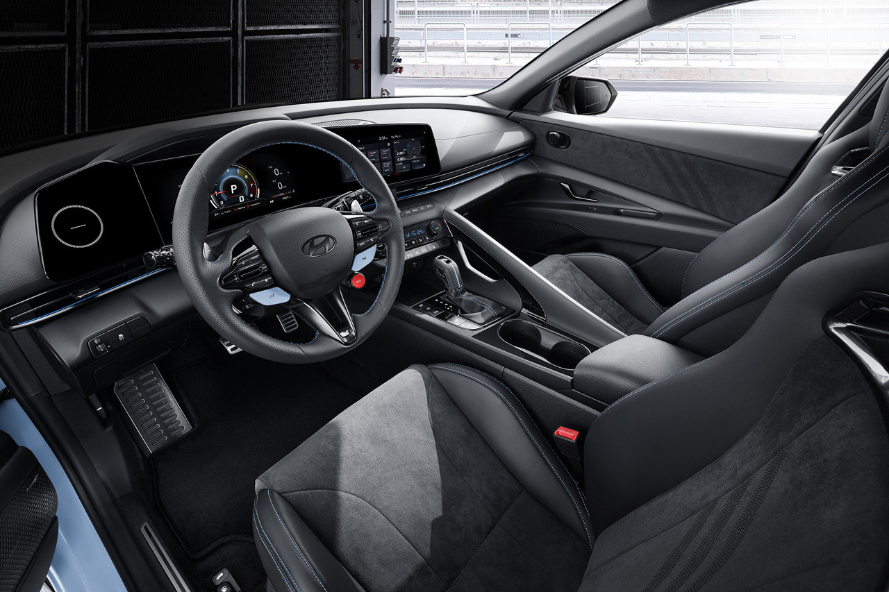 내부는 큰 변화 없이 유지되었지만, 여전히 고급스러움을 강조하는 요소들이 존재합니다. 특히, N 전용 스티어링 휠과 센터 콘솔은 운전자에게 더욱 편안하고 집중력을 높여줍니다.