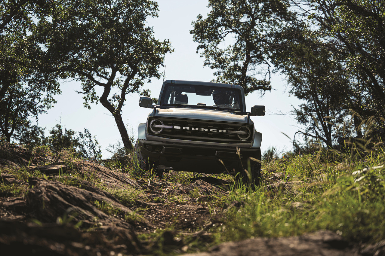 포드 브롱코 4도어는 그 어디서나 눈에 띄는 강렬한 외관으로 주목받습니다. 이 차량은 오프로드 주행을 위해 설계되었으며, 강화된 차체와 스탠다드 듀티 서스펜션을 통해 안전하고 안정적인 주행을 보장합니다. 또한 High-Performance, Off-Road, Stability, Suspension (HOSS) 시스템과 G.O.A.T (Goes Over Any Type of Terrain) 지형 관리 시스템이 적용되어 다양한 주행 모드를 선택할 수 있습니다.
