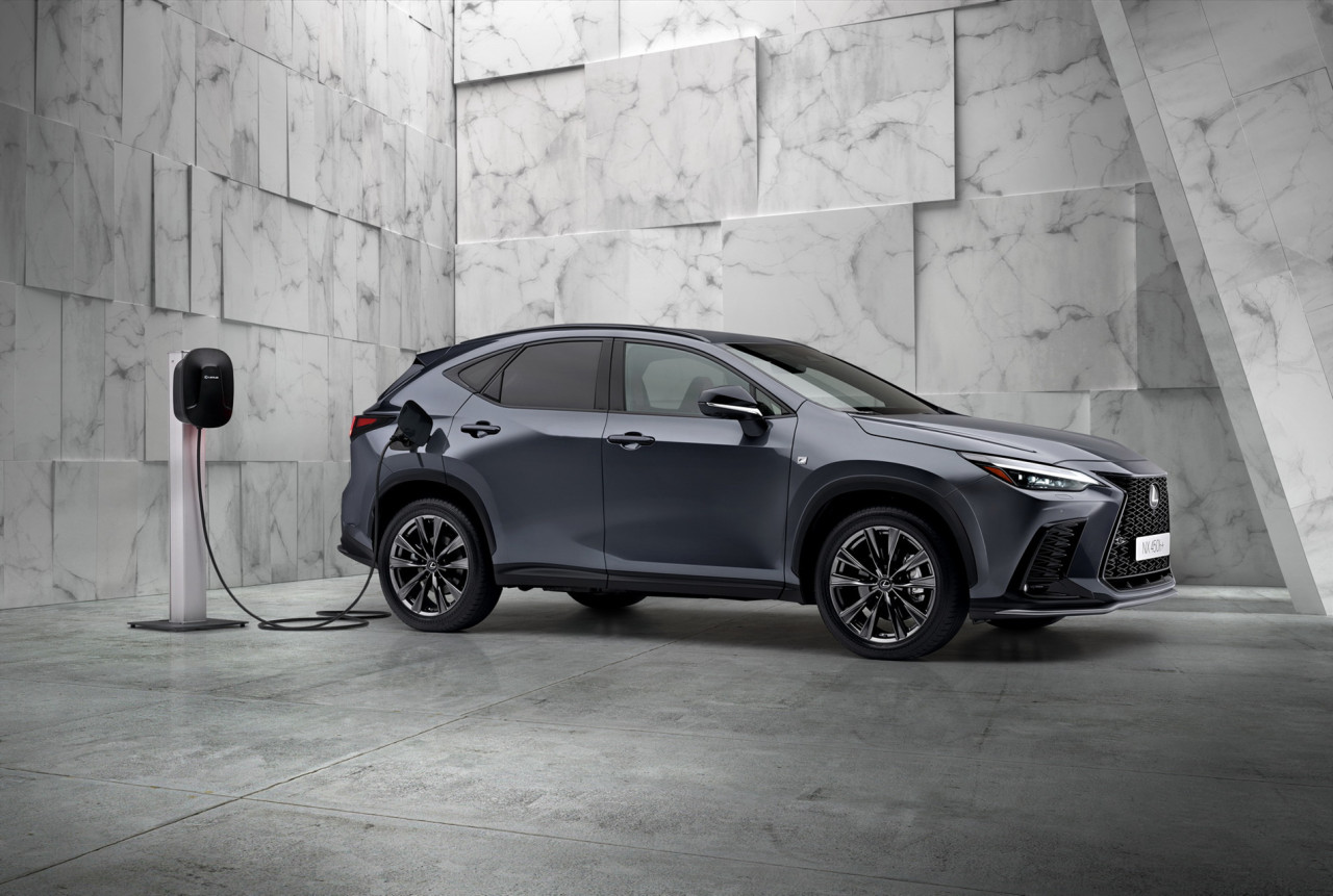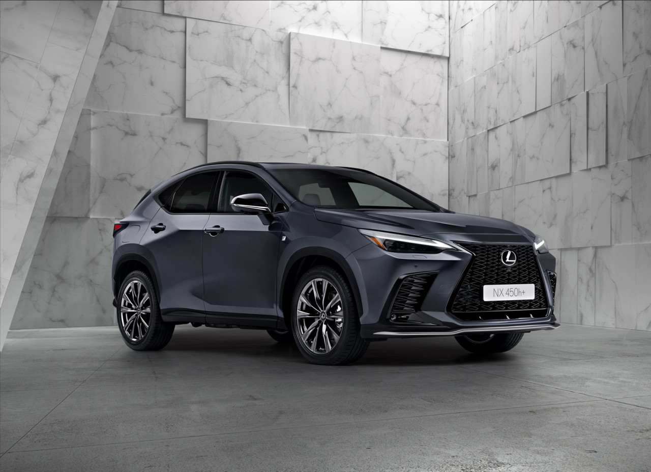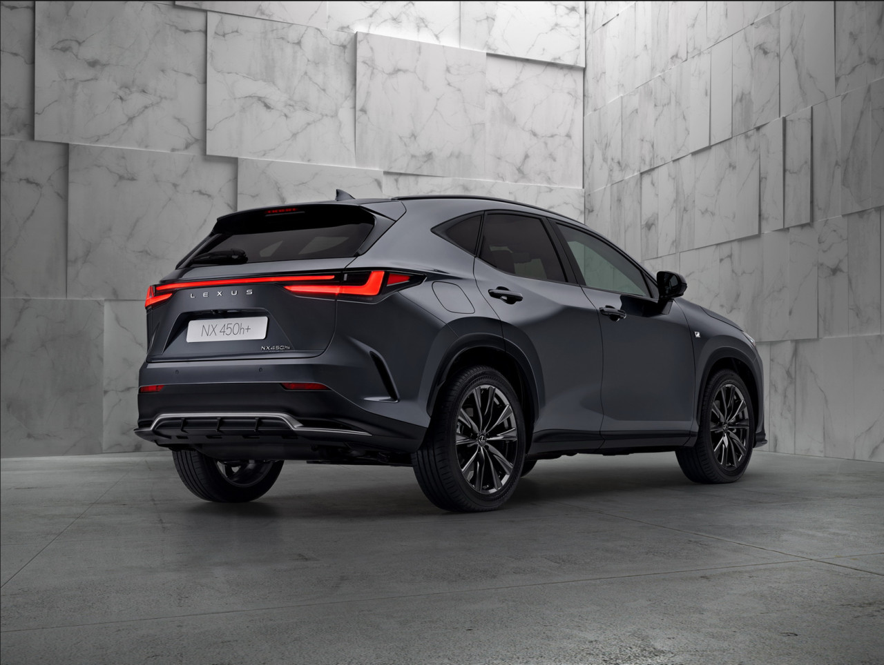 NX 450h+ 모델은 플러그인 하이브리드로 충전구를 탑재하고 있습니다. F SPORT 모델은 전용 패키지와 그릴, 20인치 휠, 전용 시트, 스티어링 휠, 그리고 계기판 등이 적용되어 스포츠적인 느낌을 강조하고 있습니다.