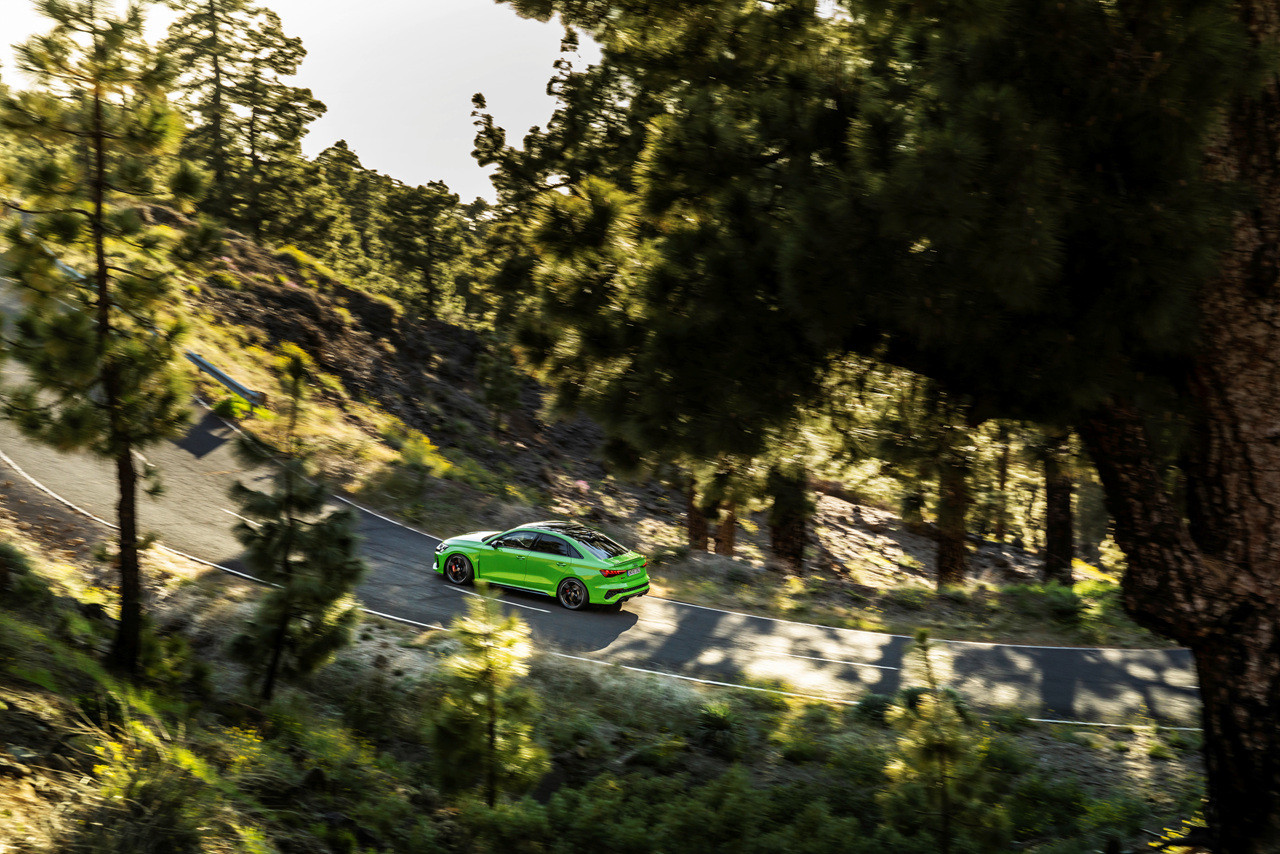 RS3 세단은 2.5리터 5 기통 가솔린 엔진을 장착하고 있으며, 최고출력은 407마력에 달합니다. 이는 순간적이고 강력한 가속을 가능하게 하며, 7단 자동 변속기와 조화를 이루어 부드럽고 효율적인 주행을 실현합니다. 또한, 콰트로 전륜 구동 시스템을 통해 최고의 트랙션과 주행 안정성을 제공합니다.