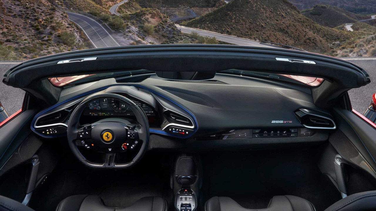 페라리 296 GTS의 내부는 고급스러운 재료와 뛰어난 디자인으로 구성되어 있습니다. 운전자는 화려한 디지털 인터페이스와 미니멀한 형태를 함께 경험할 수 있으며, 센터 터널에는 보관함이 장착되어 편의성을 높였습니다.