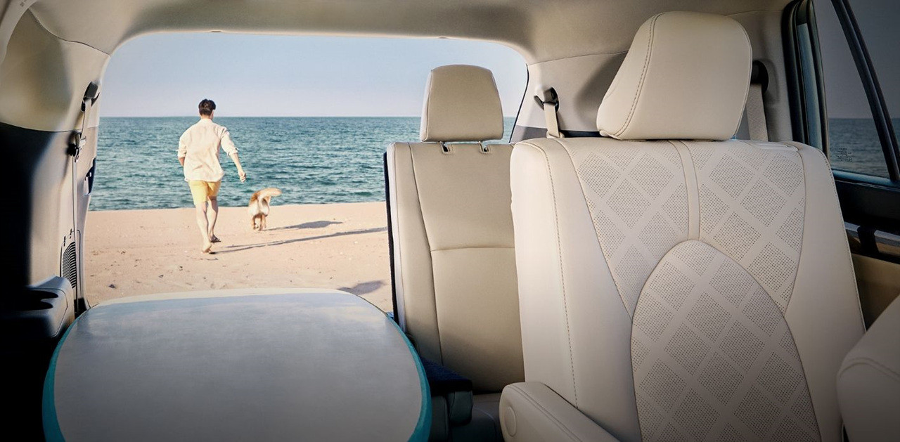 하이랜더는 7인승 SUV로, 넓은 실내 공간을 자랑합니다. 두 번째 좌석에서는 넉넉한 다리와 머리 공간을 제공하며, 세 번째 좌석도 성인에게 충분한 공간을 제공합니다. 특히, 뒷좌석을 접으면 최대 2,400리터에 이르는 넓은 적재 공간을 확보할 수 있어 다양한 용도로 활용할 수 있습니다.