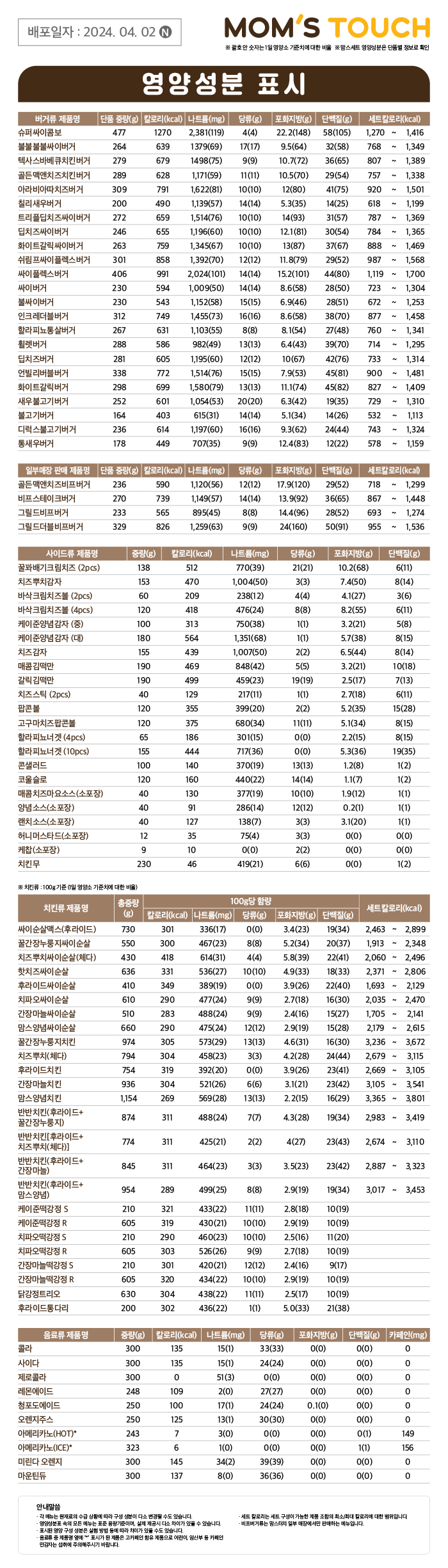 맘스터치의 메뉴는 계절이나 프로모션에 따라 변경될 수 있으므로, 가장 최신의 정보를 얻기 위해서는 맘스터치의 공식 웹사이트나 앱을 통해 확인하는 것이 좋습니다. 이를 통해 소비자들은 자신에게 맞는 칼로리와 영양 정보를 갖춘 메뉴를 선택할 수 있으며, 건강한 식습관을 유지하는 데 도움이 될 것입니다.