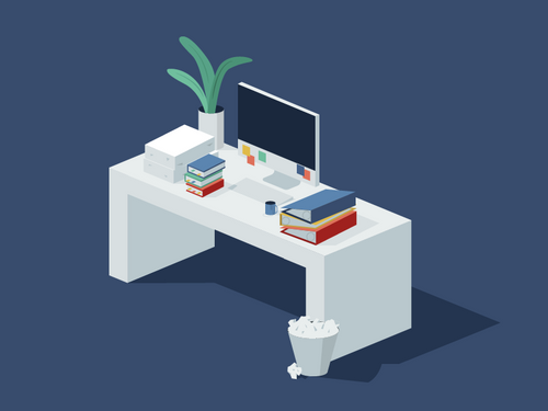 디자이너와 개발자 워커홀릭의 책상처럼 느껴진다. 남색 배경이라서 더 전문적으로 느껴지고, 하얀색 사물들은 더욱 더 한 치의 틈도 없는 견고함이 느껴진다. 빨간색, 파란색, 노란색의 선명한 컬러의 파일과 수첩들은 얼마나 꼼꼼하게 데이터가 정리되어있을지 상상이 간다.