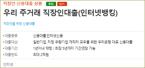 우리은행 주거래 직장인대출(인터넷뱅킹) 장점