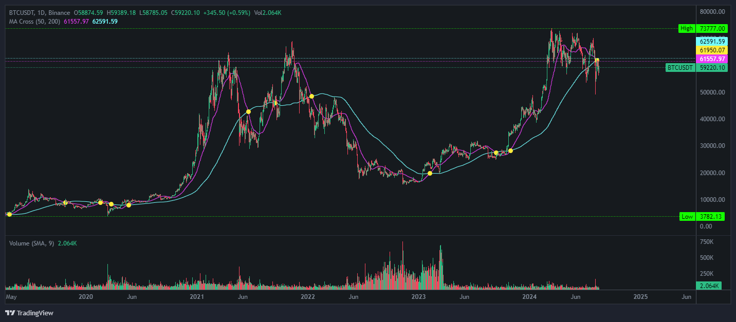 비트코인과 같은 암호화폐 시장에서 이동평균선은 중요한 분석 도구입니다. 50일선과 200일선은 특히 중요한 추세 지표로 활용되며, 이를 통해 투자자들은 시장의 방향성을 파악하고 전략을 수립할 수 있습니다. 그러나, 이러한 도구들은 시장의 복잡성을 완전히 반영할 수 없으므로, 다양한 분석과 함께 신중하게 사용되어야 합니다.