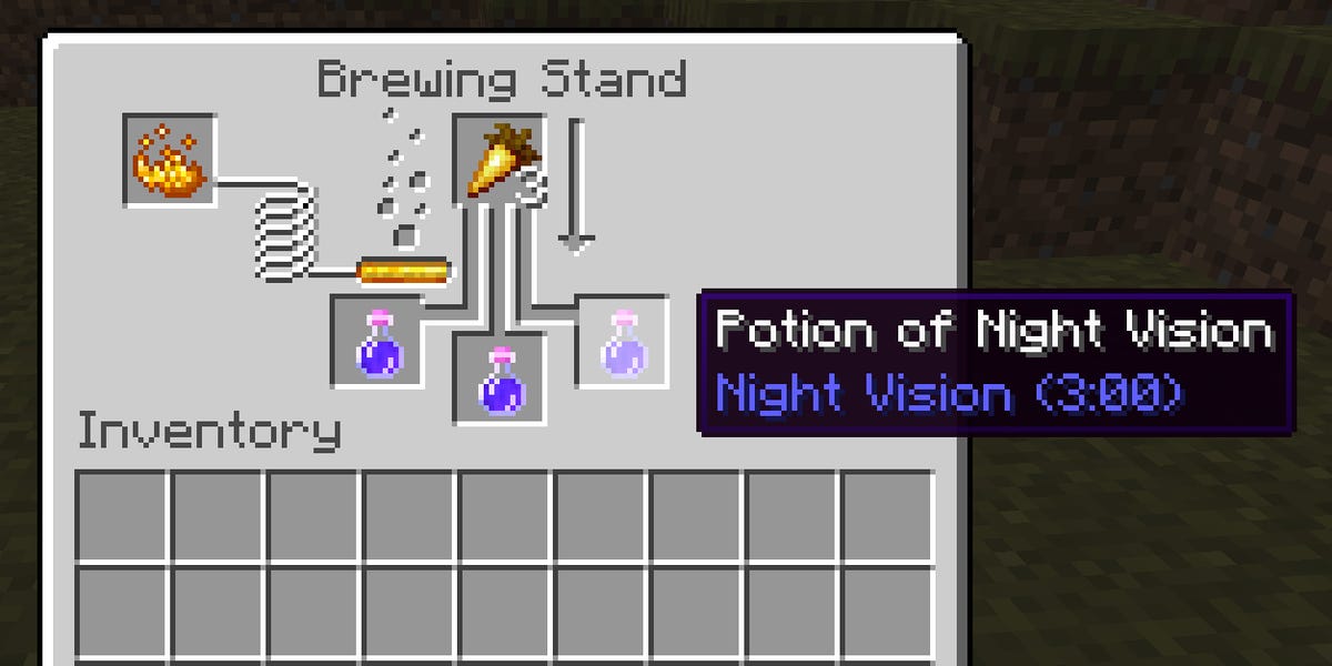 - 어색한 물약에 황금당근을 추가하여 야간투시 물약을 만듭니다.