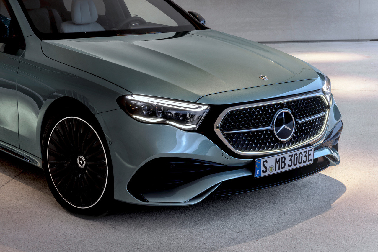 새로운 E클래스는 클래식한 세단의 비율을 유지하면서도 현대적인 감각을 더했습니다. 매끄럽게 처리된 도어 핸들과 눈에 띄는 테일라이트, 그리고 라디에이터 그릴과 헤드램프를 연결하는 블랙 패널은 이 차의 스포티하고 우아한 캐릭터를 강조합니다.