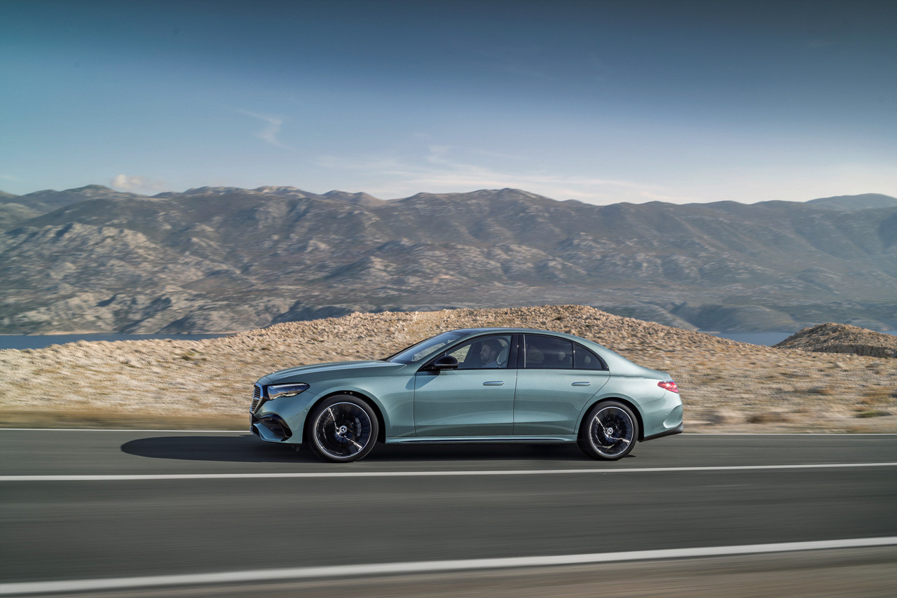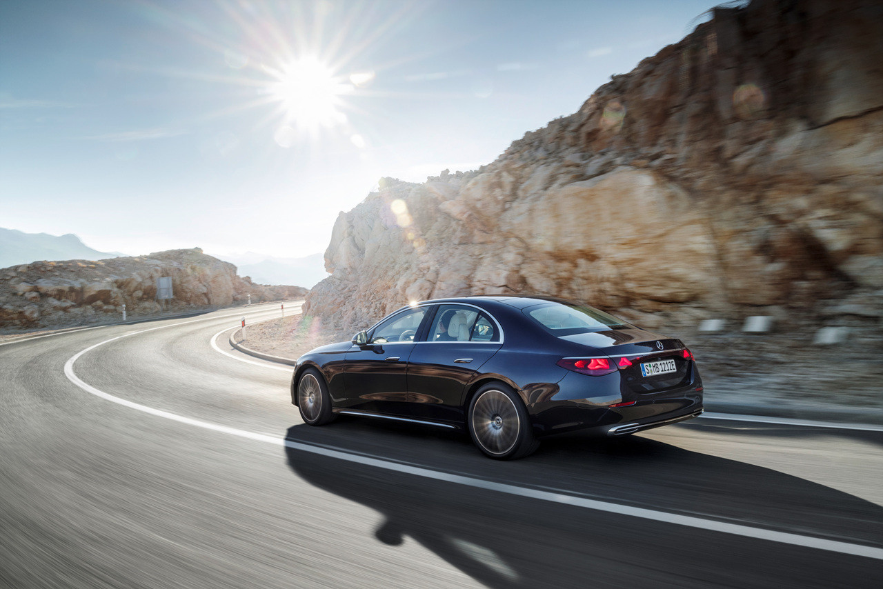 새로운 E클래스는 클래식한 세단의 비율을 유지하면서도 현대적인 감각을 더했습니다. 매끄럽게 처리된 도어 핸들과 눈에 띄는 테일라이트, 그리고 라디에이터 그릴과 헤드램프를 연결하는 블랙 패널은 이 차의 스포티하고 우아한 캐릭터를 강조합니다.