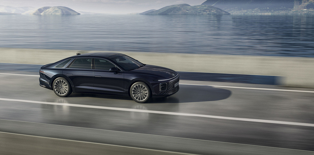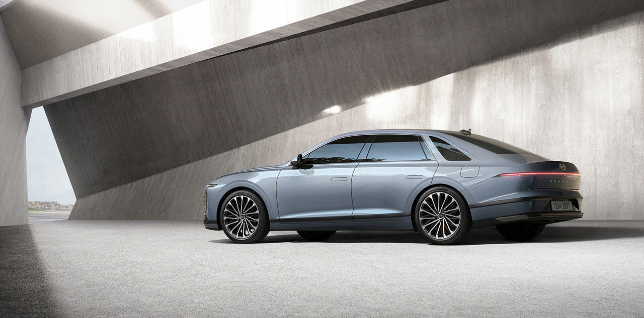 새로운 그랜저 하이브리드는 날렵하고 역동적인 외관 디자인으로 강렬한 첫인상을 남깁니다. 대형 그릴과 슬림한 헤드램프는 현대적인 감각과 함께 강인함을 표현하며, 측면의 다이내믹한 캐릭터 라인은 스포티한 느낌을 더합니다. 후면부의 와이드한 리어램프와 듀얼 머플러는 안정감과 고급스러움을 동시에 전달합니다.