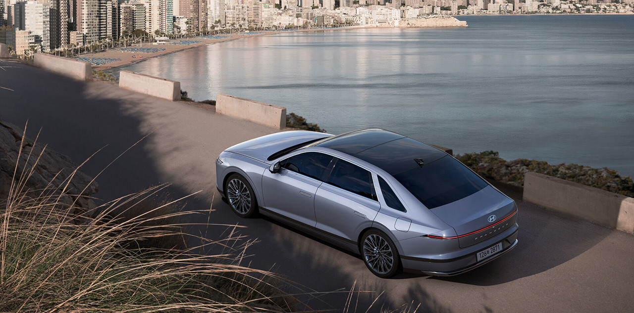 새로운 그랜저 하이브리드는 날렵하고 역동적인 외관 디자인으로 강렬한 첫인상을 남깁니다. 대형 그릴과 슬림한 헤드램프는 현대적인 감각과 함께 강인함을 표현하며, 측면의 다이내믹한 캐릭터 라인은 스포티한 느낌을 더합니다. 후면부의 와이드한 리어램프와 듀얼 머플러는 안정감과 고급스러움을 동시에 전달합니다.