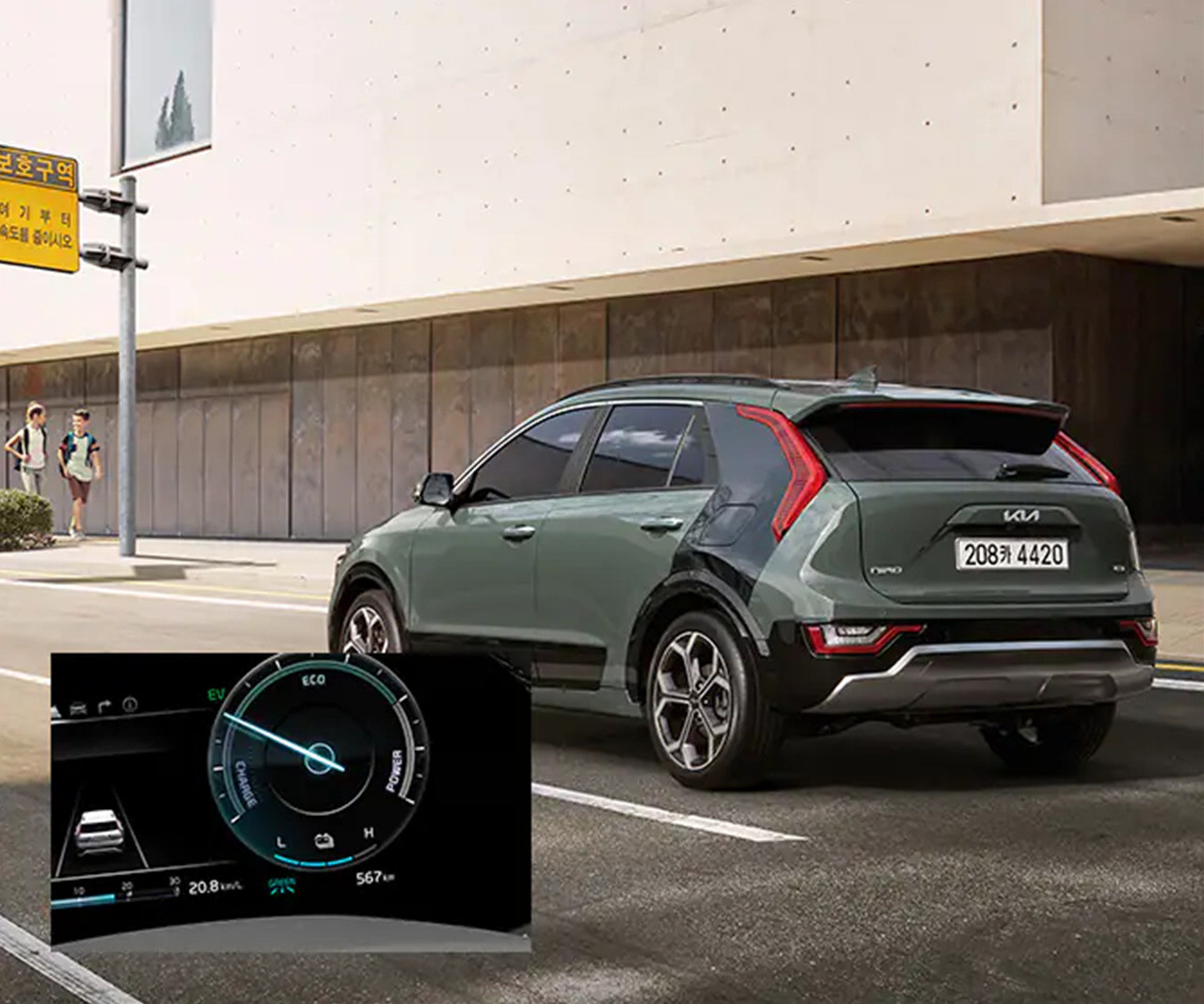 현대적이고 세련된 외관을 자랑하는 니로 하이브리드는 내부 디테일에도 신경을 써서 운전자와 탑승자 모두에게 편안함과 안락함을 제공합니다. 모든 트림에 1열 이중접합 차음 글래스와 실내 소화기가 기본 적용되어 안전성을 한층 더했습니다.