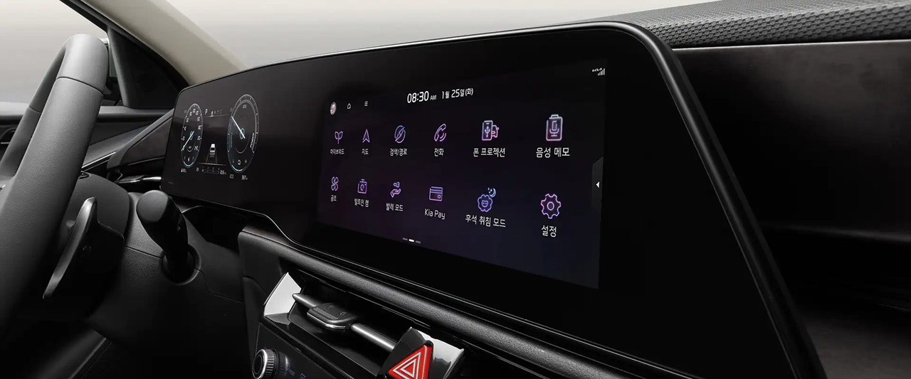 10.25인치 내비게이션과 클러스터가 통합된 파노라마 디스플레이는 심플하면서도 테크한 실내를 구현합니다. 운전자 전면 유리창에 계기판 및 주요 정보를 표시하여 운전자가 운전에만 집중할 수 있도록 정보를 제공합니다.