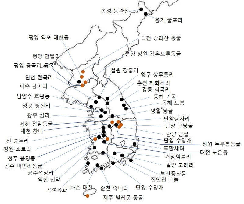 이 외에도 한반도의 구석기 시대 유적은 두만강 유역에서 제주 빌레못 동굴까지 동해안, 남해안, 서해안, 산악지대에 걸쳐 골고루 분포하고 있어, 한반도 전역이 구석기인의 삶의 터전이었음을 알 수 있습니다.