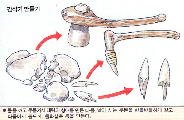 구석기 시대는 주로 뗀석기, 즉 돌을 깨뜨려 만든 도구를 사용했던 시대입니다. 이 시대의 대표적인 도구로는 주먹도끼, 찍개, 찌르개 등이 있으며, 이를 이용하여 사냥과 채집 생활을 했습니다. 반면, 신석기 시대는 간석기, 즉 돌을 갈아서 만든 도구들이 등장합니다. 이 시대의 도구로는 돌삽이나 돌괭이 등이 있으며, 농경 생활의 시작을 알리는 중요한 변화를 나타냅니다.