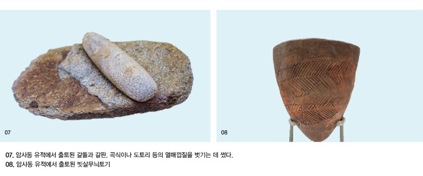 암사동 유적에서 발견된 유물들은 신석기 시대 사람들의 생활상을 잘 보여줍니다. 이들은 농업과 수렵을 통해 생계를 유지하였으며, 다양한 도구와 장신구를 제작하였습니다. 특히, 암사동 유적에서는 옥으로 만든 장신구가 발견되어 당시 사람들의 미적 감각과 기술 수준을 엿볼 수 있습니다. 또한, 이 지역의 주거지는 원형으로 구성되어 있었으며, 공동체 생활을 하였던 것으로 추정됩니다.