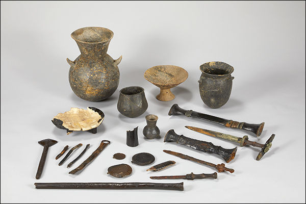 무덤 내부에는 시신을 안치한 공간 외에도 부장품을 놓는 공간이 따로 마련되어 있었으며, 그곳에는 대나무 바구니에 담긴 과일과 쇠도끼 등이 놓였습니다. 이러한 의식은 죽은 자를 위로하고, 그들이 저승에서 잘 살기를 바라는 의미를 담고 있습니다. 마지막으로 무덤 위에는 흙을 덮어 얕은 봉분을 만들었으며, 그 위에는 밤을 뿌리는 등의 의식도 행해졌습니다.