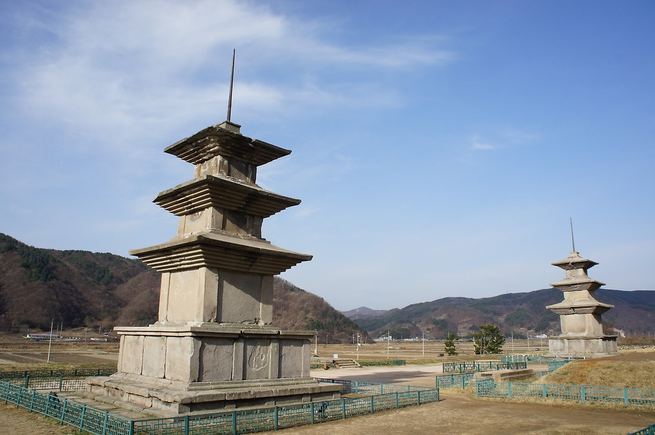 사적 제31호 감은사지(感恩寺址)는 경북 경주시에서 동해안을 따라 36km 떨어진 곳에 자리한 유서 깊은 절터입니다. 신라의 제31대 신문왕(神文王)이 그의 아버지 문무왕(文武王)을 기리기 위해 창건한 이 사찰은 통일신라의 호국사찰로서 의미가 큽니다. 현재는 옛 가람을 구성했던 건축물들은 사라졌으나, 국보 제112호로 지정된 삼층석탑 두 기가 남아 그 위용을 자랑합니다. 감은사는 문무왕의 호국정신과 불교적 세계관을 엿볼 수 있는 상징적인 유적지로 평가받고 있습니다.