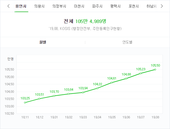 용인시 인구가 이처럼 단기간에 급증한 것은 역북·고림지구와 남사(아곡)지구 등 시내 곳곳에서 대규모 신축 아파트 단지의 입주가 이어졌기 때문이다.