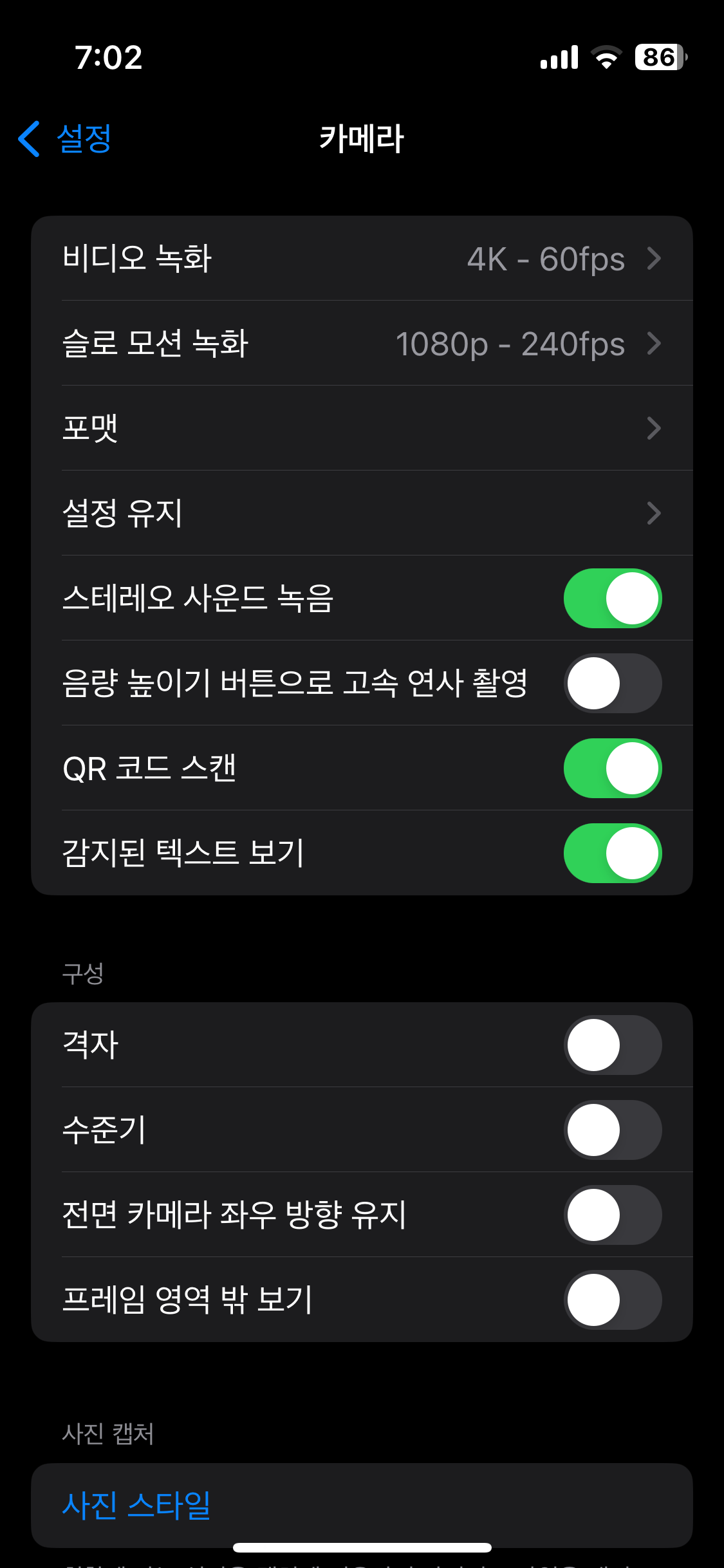 3. 카메라 설정 유지 기능 활성화