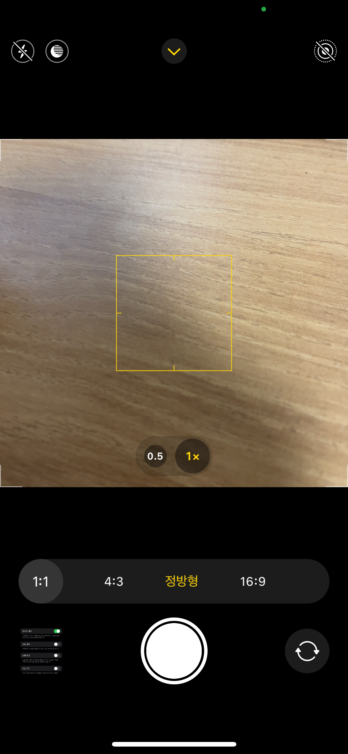 이제 아이폰폰은 마지막에 사용한 정방형 모드를 기억하고, 앱을 종료하거나 재실행하더라도 설정이 초기화되지 않습니다.