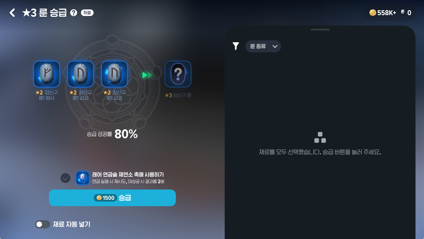 획득한 하위 등급 룬이나 룬 조각들을 모아 상위 등급 룬으로 만들 수 있어요.
