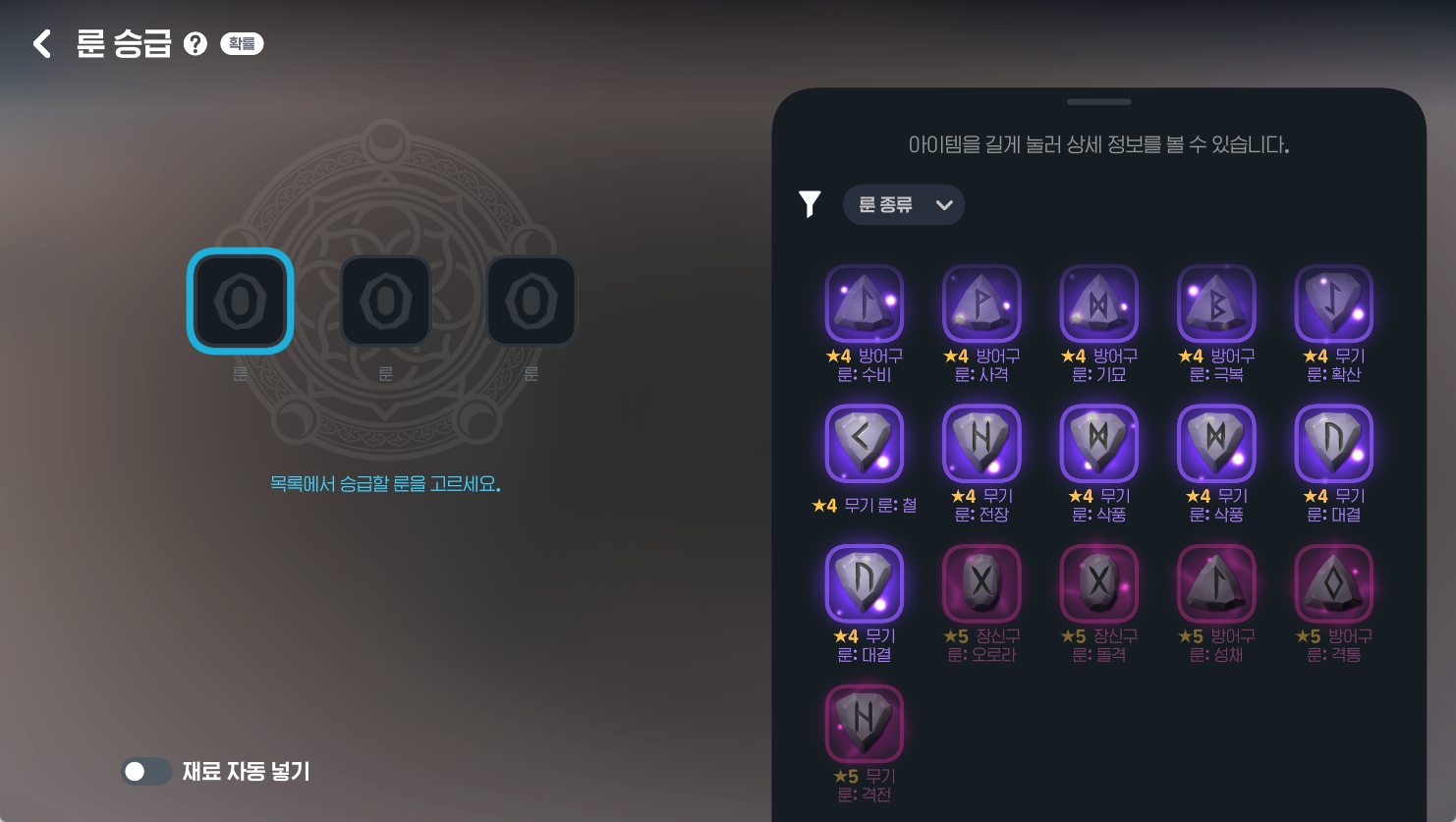 룬 합성 - 상위 등급 룬 도전! 🎲