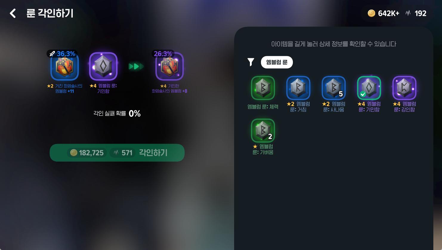 룬 합성 - 상위 등급 룬 도전! 🎲