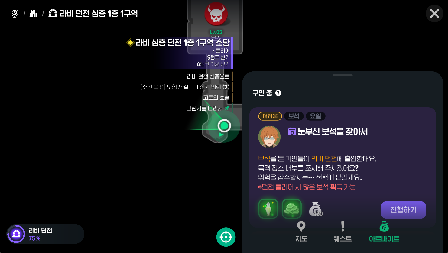 - 수락 후 제한 시간 내에 클리어해야 보상을 받을 수 있어요.