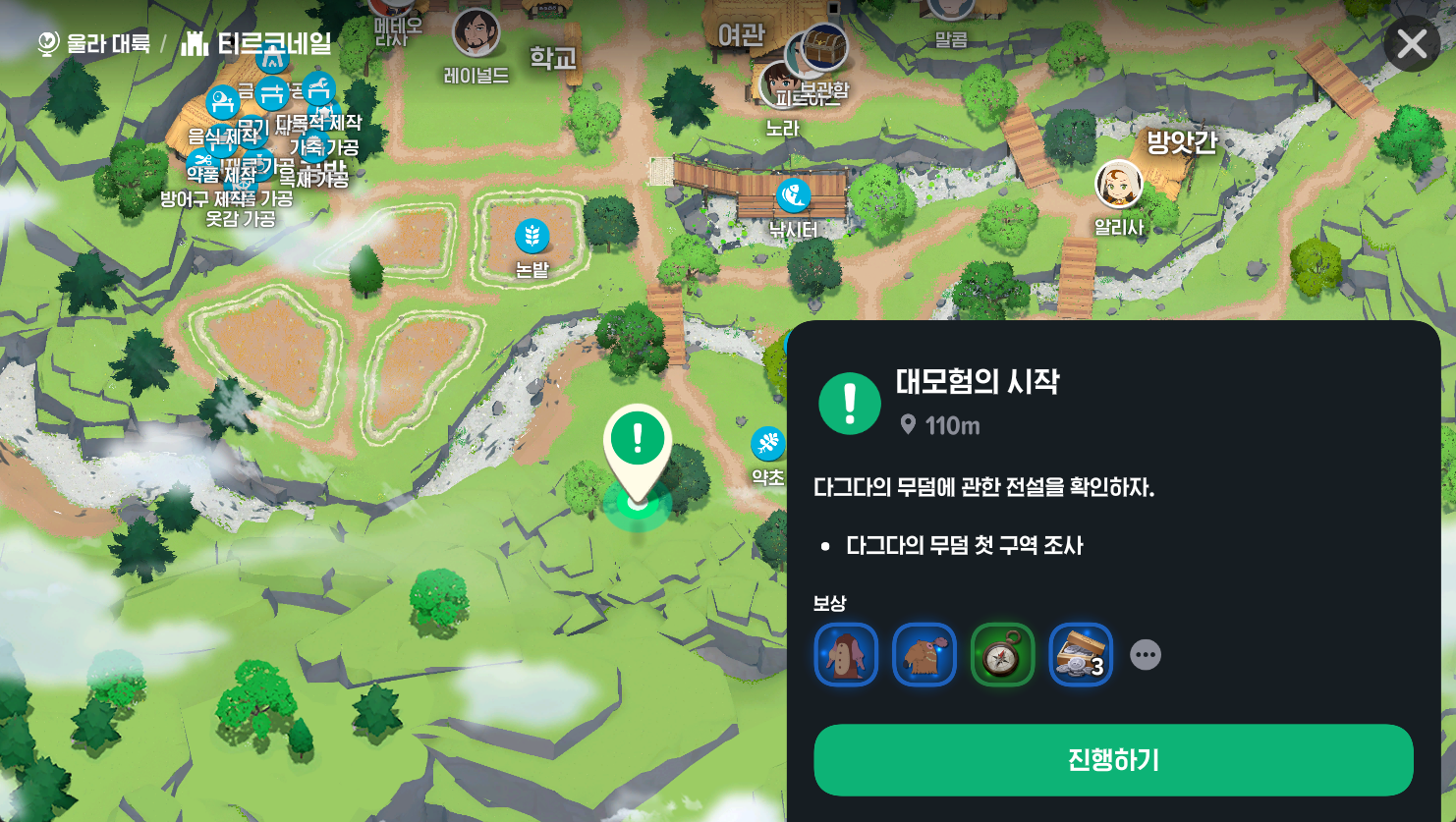 - 내용: NPC '나크'와 대화하기
