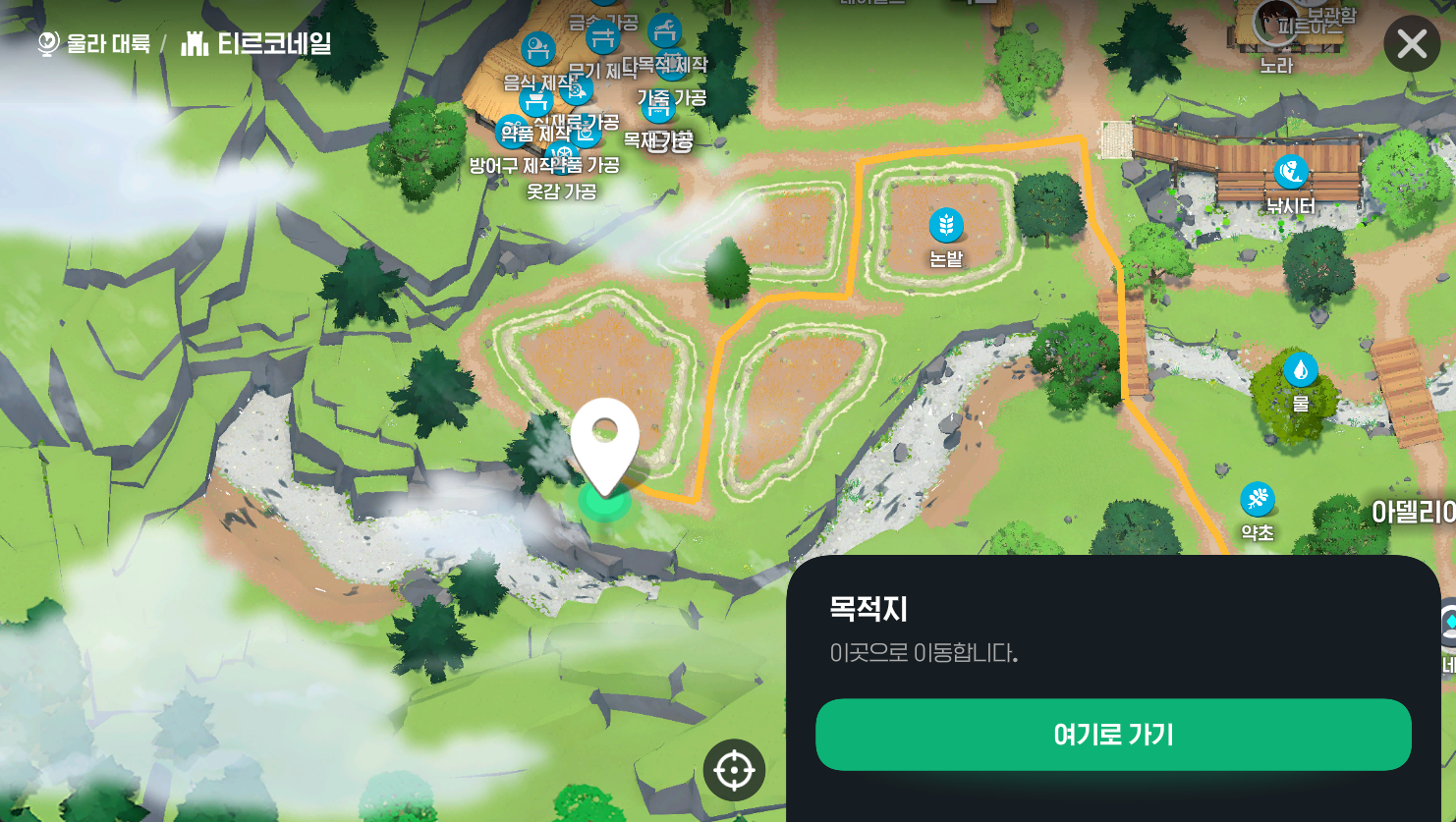- 위치: 티르 코네일 7시 방향 논밭 근처 (지도에 '❓' 아이콘 표시)