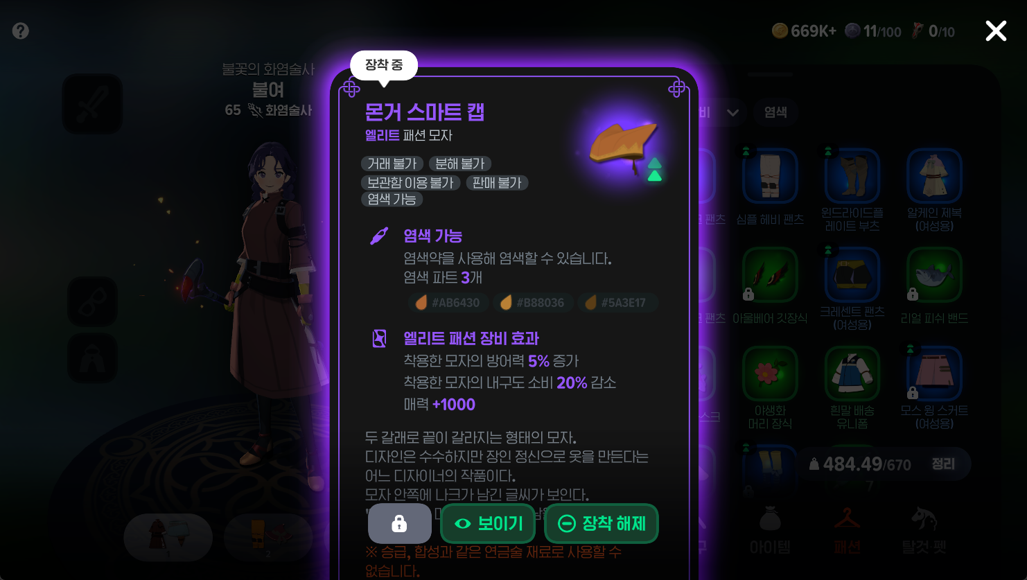 - 보상: 몬거 스마트 캡 (엘리트 등급 모자 코스튬)