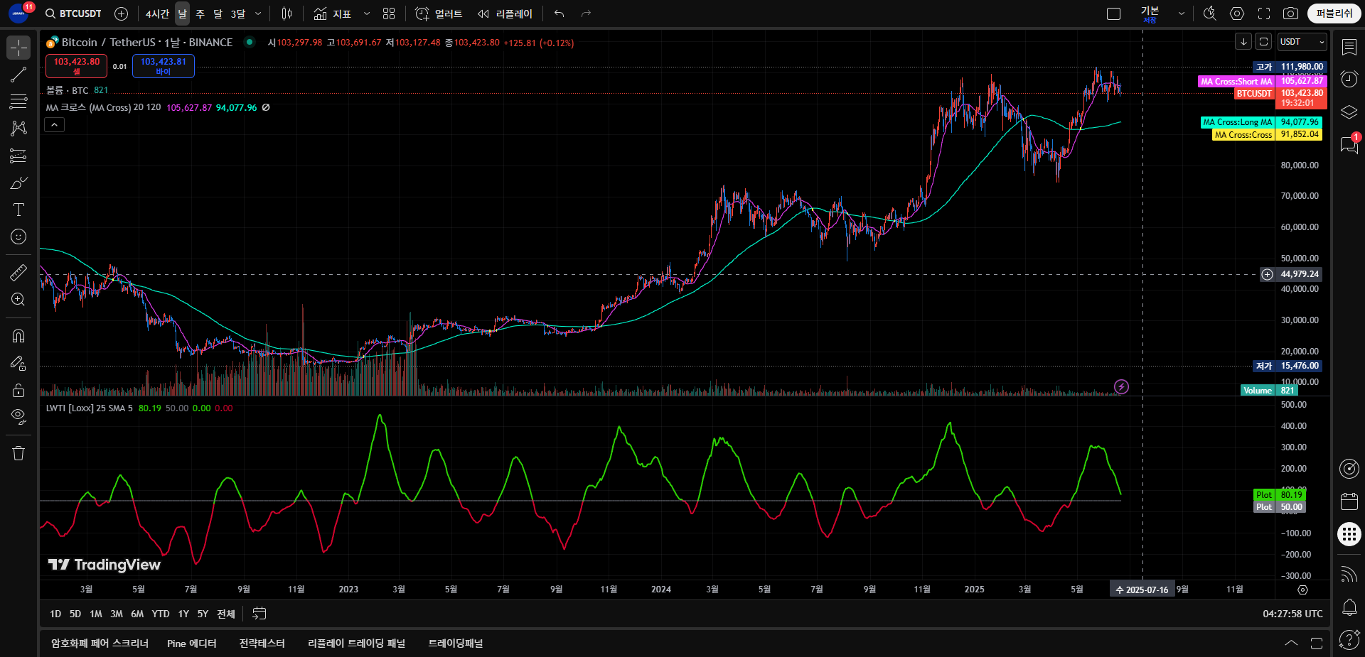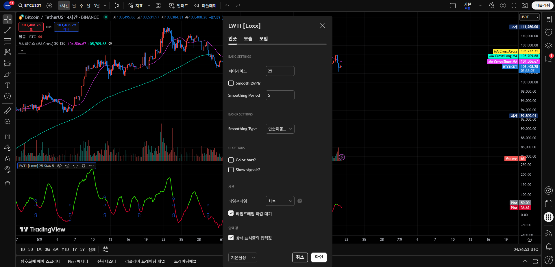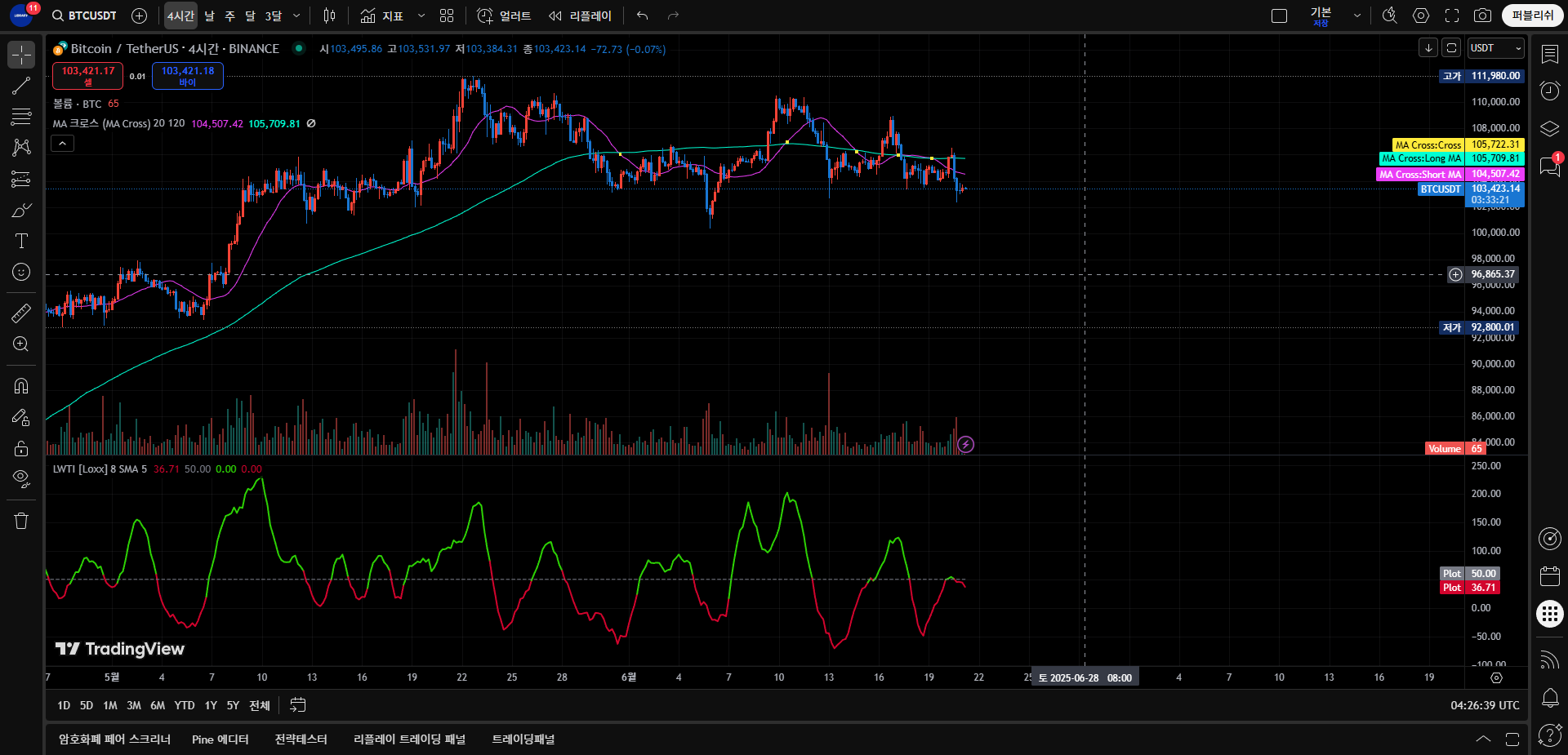 이 지표의 초록색은 현재의 상승 돌파가 대규모 자금의 유입에 의해 지지받고 있음을 의미하며, 이는 추세가 지속될 가능성이 높다는 신뢰도 높은 신호입니다. 이 두 가지 조건이 모두 만족되었을 때, 비로소 매수 포지션에 진입합니다. 만약 돌파가 발생했더라도 LWTI 지표가 붉은색이라면, 이는 함정일 가능성이 높으므로 진입하지 않고 관망하는 것이 원칙입니다.