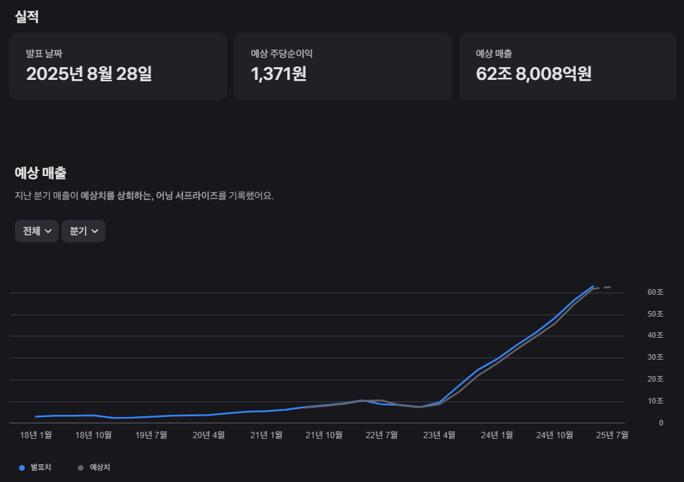이러한 성장의 핵심 동력은 단연 AI 부문입니다. 데이터센터에 들어가는 고성능 AI 칩 수요가 폭증하면서 엔비디아의 매출과 이익이 기하급수적으로 늘어난 것입니다. 영업이익률 또한 꾸준히 개선되고 있어, 단순히 매출만 늘어나는 것이 아니라 수익성까지 잡은 내실 있는 성장을 보여주고 있습니다.