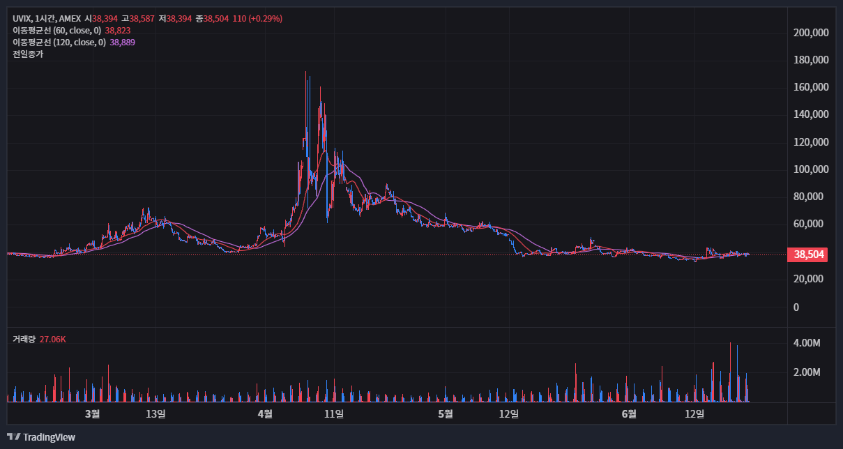 UVIX 주가의 가장 큰 특징은 극심한 변동성입니다. VIX 지수 자체가 높은 변동성을 가지는데, 여기에 2배의 레버리지까지 더해져 가격 변동 폭이 상상을 초월할 수 있습니다. 따라서 UVIX는 일반적인 주식처럼 장기적으로 보유하며 우상향을 기대하는 자산이 결코 아닙니다.