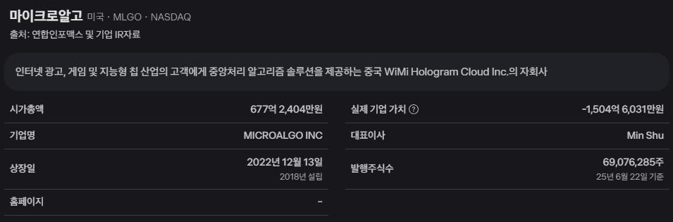 최근 나스닥 시장에서 투자자들의 뜨거운 관심을 받는 종목이 있습니다. 바로 마이크로알고(MicroAlgo, Inc., NASDAQ: MLGO)입니다. 연일 높은 변동성을 보이며 커뮤니티를 뜨겁게 달구고 있는데요. 특히 설명가능 인공지능(XAI)과 블록체인을 결합한 새로운 기술 소식이 전해지면서 주가가 크게 요동치고 있습니다. 과연 마이크로알고는 어떤 잠재력을 가진 기업이며, 현재의 주가 흐름을 어떻게 이해해야 할까요? 기초적인 기업 정보부터 최신 기술 테마, 그리고 투자자들이 바라보는 현실적인 시선까지 깊이 있게 파헤쳐 보겠습니다.