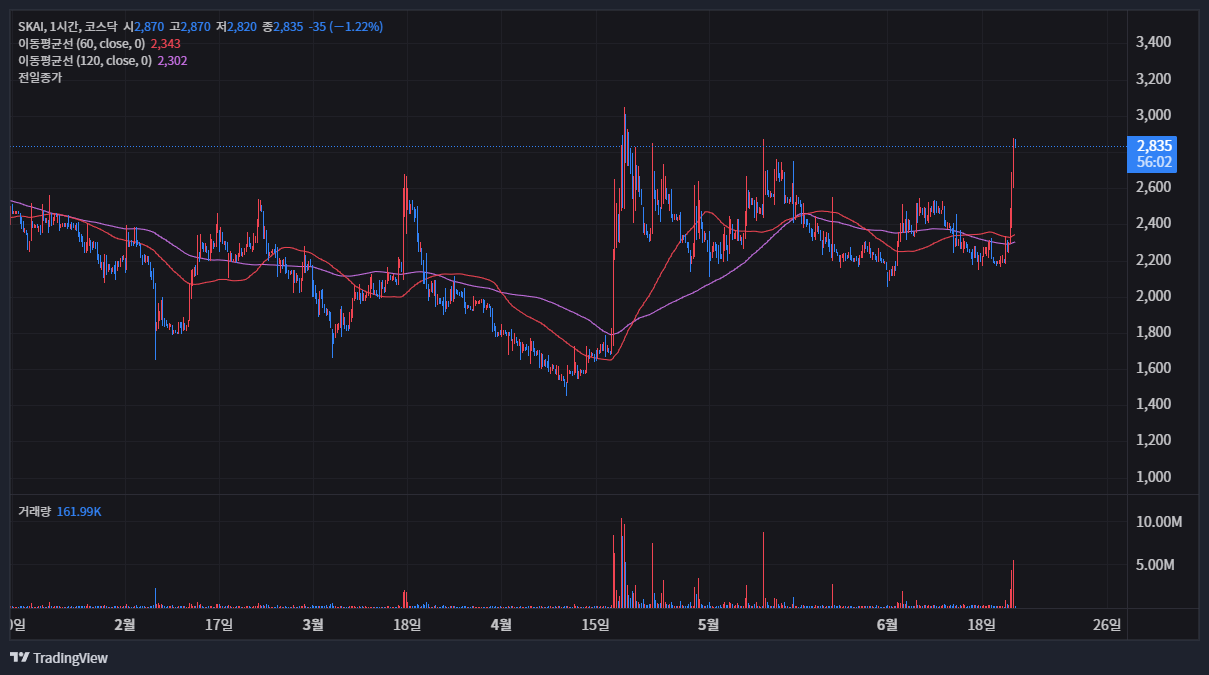 최근 SKAI 주가는 긍정적인 신호를 보이고 있습니다. 6월 23일 기준으로 2,450원을 기록하며 전일 대비 8%가 넘는 상당한 상승률을 보였습니다. 이는 시장의 기대감이 반영된 결과로 해석될 수 있으며, 49억 원에 달하는 거래대금은 투자자들의 높은 관심을 입증합니다. 이처럼 변동성이 나타나는 시점에서는 주가의 단기적인 등락에 일희일비하기보다, 거래량의 추이와 함께 시장 참여자들이 어떤 심리를 가지고 움직이는지를 파악하는 것이 중요합니다. 커뮤니티의 반응을 살펴보면 일부 투자자들은 추가적인 상승을 기대하며 물타기(추가 매수)를 고려하는 등 긍정적인 분위기도 감지되지만, 장기적인 관점에서 신중한 접근이 필요하다는 목소리도 공존하고 있습니다.