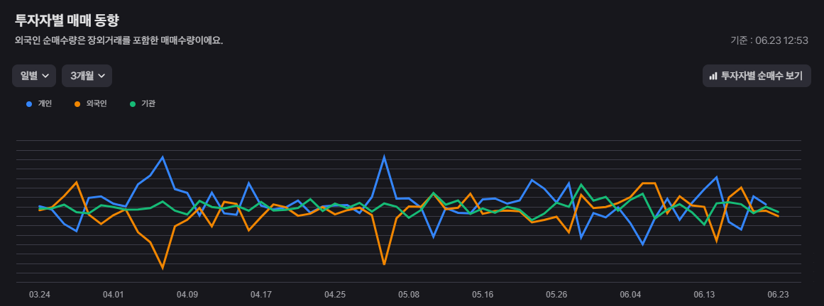 또한, 토스증권에서는 최근 며칠간의 일별 주가 데이터를 표로 정리해 보여줍니다. 이를 통해 단기적인 주가 추세와 등락률, 거래량의 변화를 손쉽게 확인할 수 있어 투자 판단의 기초 자료로 활용하기 좋습니다.