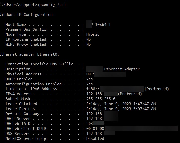 ipconfig /all
