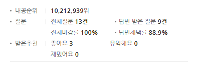 심지어 다른 계정의 네이버 지식인 프로필을 확인했더니, 무려 영웅 등급이었다. 정말 열심히 답변을 달았구나 싶었다. 계정을 모두 합치면 생각보다 정말 많은 답변을 달았었고, 의외로 네이버 지식인을 통해서 질문도 많이 하고, 또 답변도 많이 했었던 것 같다.
