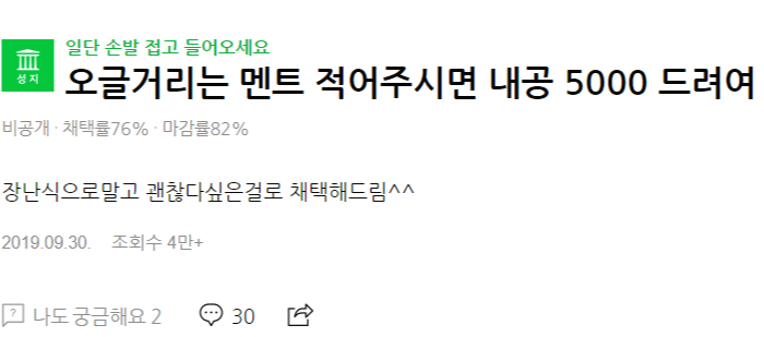 - 일단 손발 접고 들어오세요. 오글거리는 멘트 적어주시면 내공 5,000 드려요.