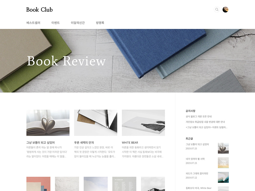 블로그 홈을 처음 접하는 초심자에게 추천합니다. 단정한 첫인상을 블로그에 입혀 보세요.