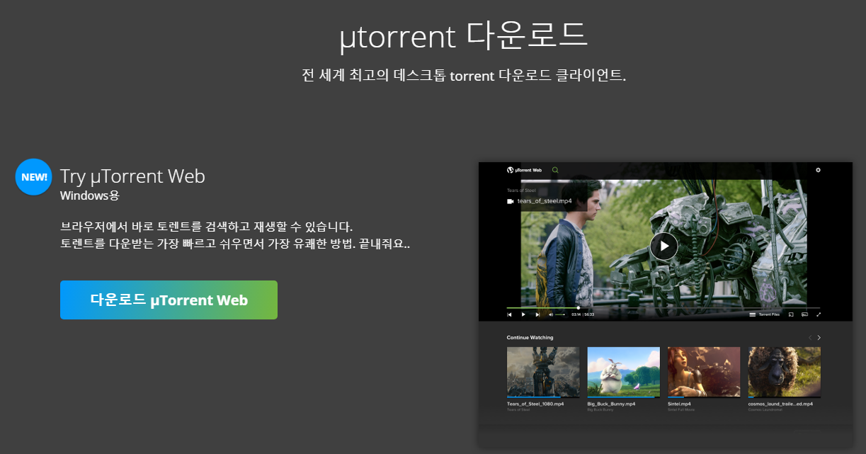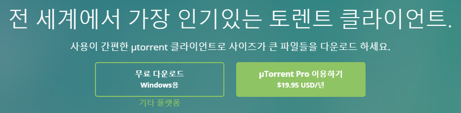 토렌트는 utorrent에서 다운받을 수 있는데요. 여러가지 버전이 있고, utorrent Web 버전도 설치할 수 있으나, 저는 기본적으로 PC 버전으로 설치하고 사용합니다.