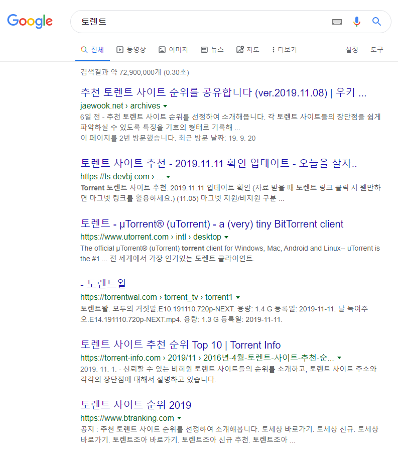 토렌트 사이트는 구글에서 검색하면 매우 쉽게 찾을 수 있습니다.