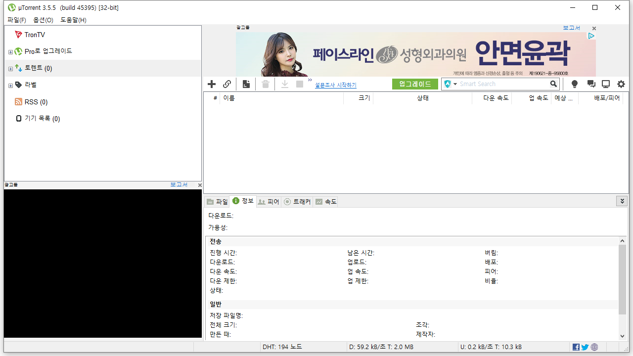 토렌트에서 별도로 옵션을 설정하실 것은 없고, 네트워크 상태에 따라서 파일을 더 빠르게 다운받은 옵션 설정은 있습니다. 이 부분에 대해서는 별도의 글에서 알아보도록 하겠습니다. 이 상태에서 특별히 할 것은 없고, 토렌트 사이트에서 내가 원하는 파일을 찾습니다.