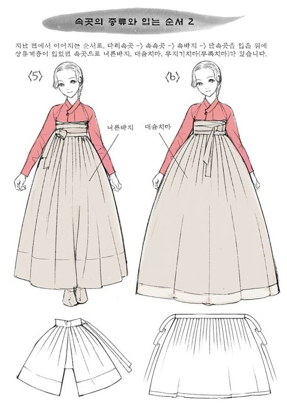 이외에 한복을 그리는 부분도 구조를 생각하고, 실제로 어떤 옷을 입고 주름이 어떻게 지는지 생각하면서 그리면 더욱 쉽게 그림을 그릴 수 있다. 겉모습만 그리는 것이 아니라 인물을 그릴 때는 굴곡이나 입체적인 구조를 생각하면서 그려 넣어야만 캐릭터가 훨씬 생생해진다.